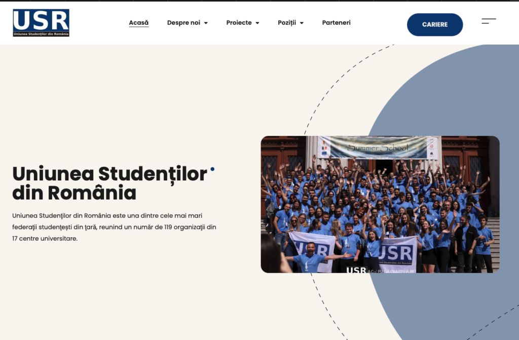 Am realizat și dezvoltat platforma web oficială a Uniunea Studenților din România, una dintre cele mai mari federații studențești din țară, cu rol național de reprezentare și advocacy. Am construit arhitectura informațională completă a site-ului, structurând clar secțiunile de prezentare instituțională (Despre noi, Scop, Poziții), proiecte naționale, comunicate de presă, parteneriate și oportunități de implicare (voluntariat, cariere), astfel încât platforma să reflecte dimensiunea, legitimitatea și impactul organizației.